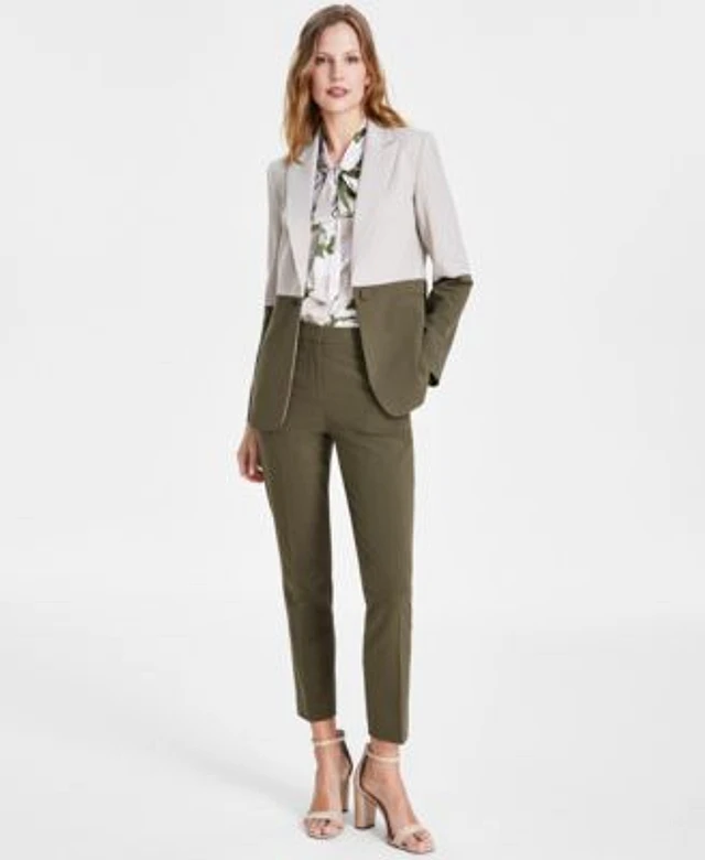Tahari Asl Colorblocked Blazer Tie Neck Blouse Slim Pants