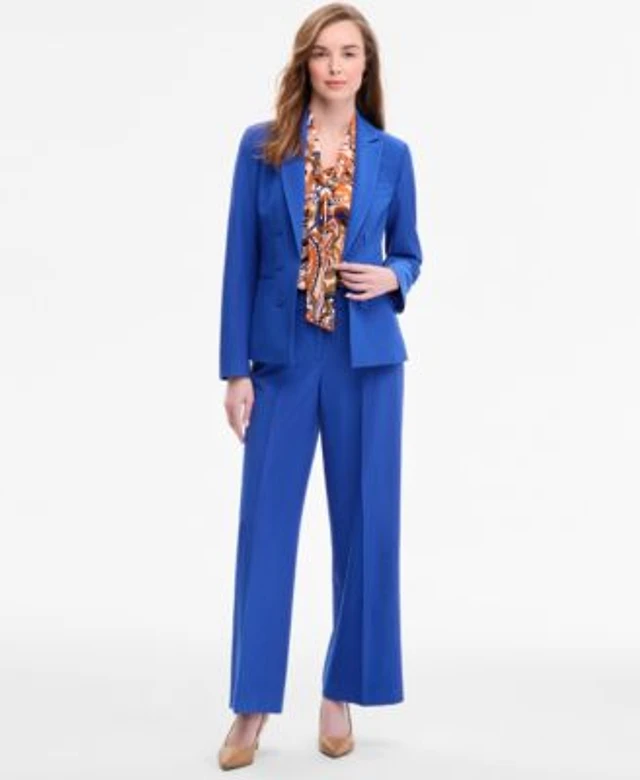 Tahari Asl Plus Size Single Button Crepe Blazer Wide Leg Pants