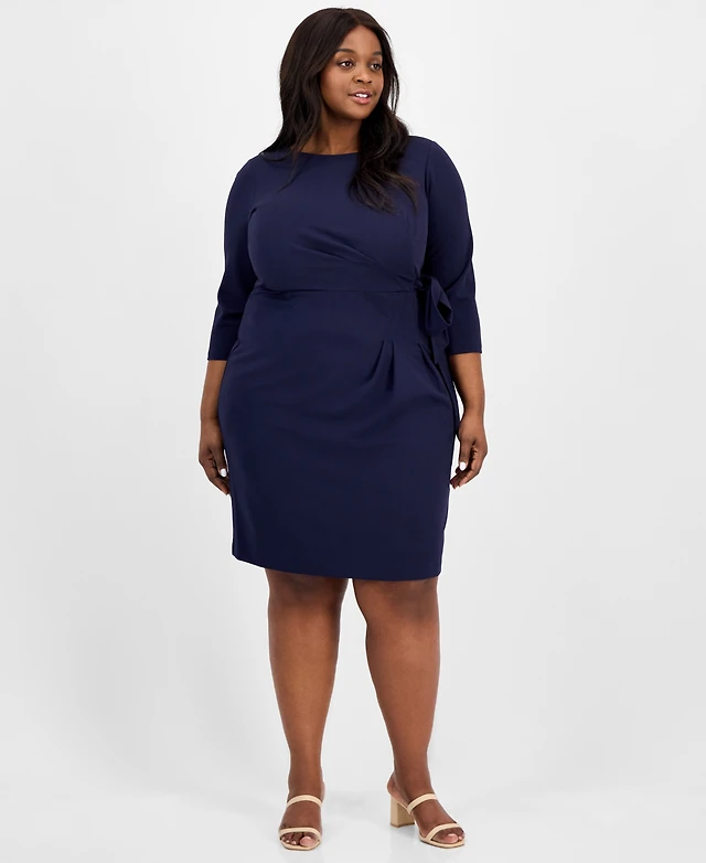 Tahari Plus Side-Tie Back-Belted 3/4-Sleeve Dress