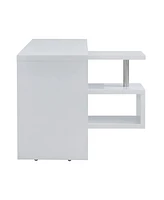 No cut corners. As a console with shelf space, this entryway table fits in your hall. As an adjustable swing desk, rotate the shelf space outward and create a modern L shaped desk in your home office, complete with a bookshelf and writing table.