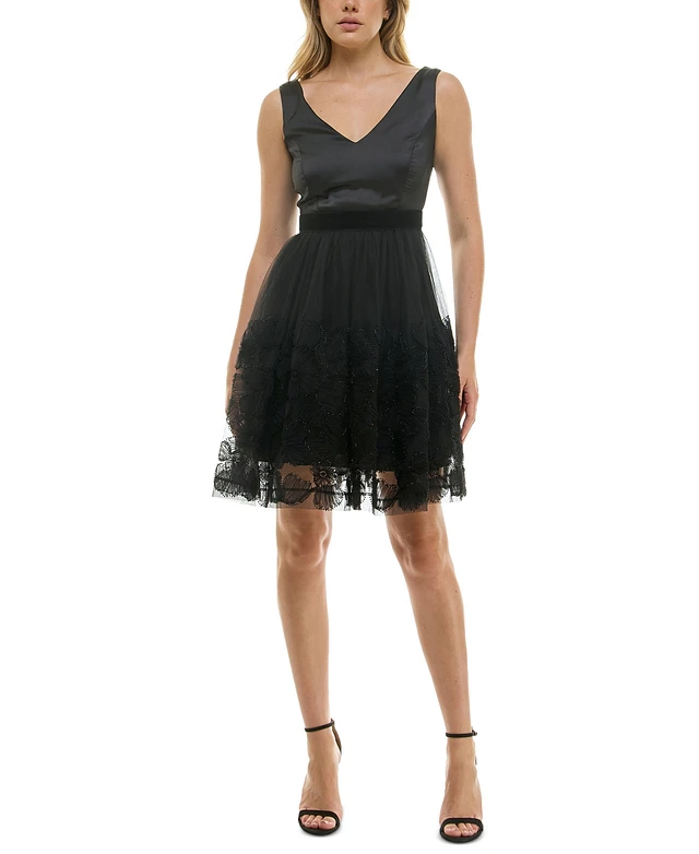 Taylor Women's Embellished Mesh Skirt Fit & Flare Dress