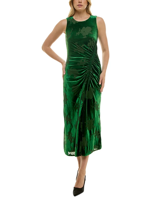 Taylor Women's Ruched Burnout Velvet Midi Dress