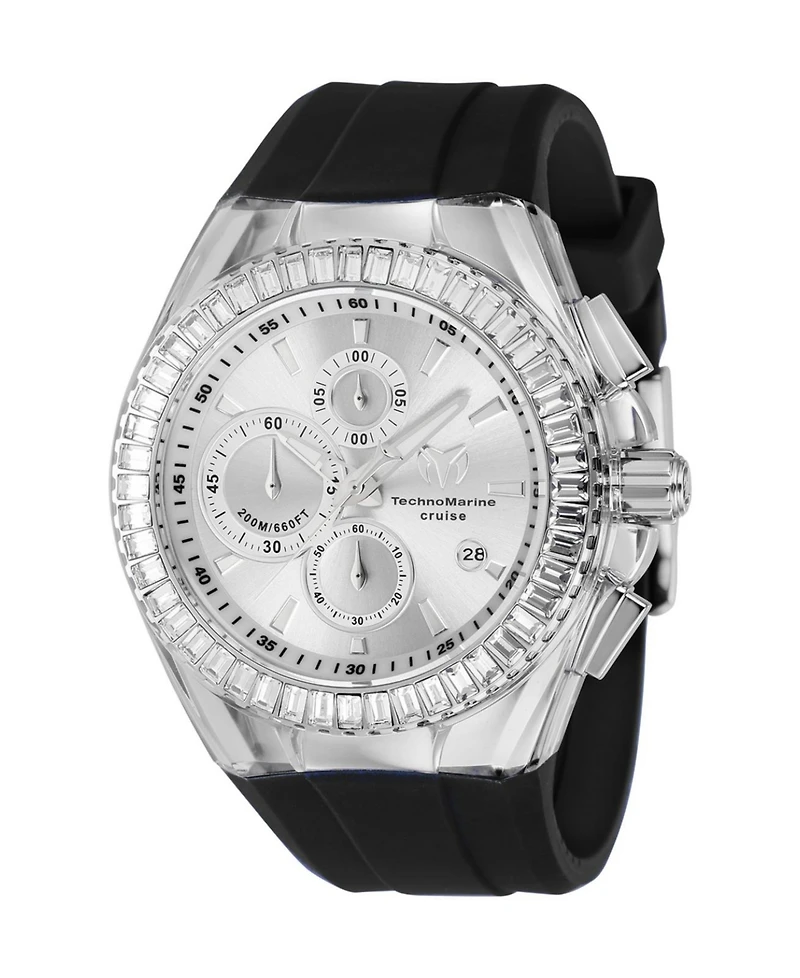 Defined by bold elements of design and color, the TechnoMarine Cruise collection is built to encounter any adventure by land or by sea. Through charismatic fluency, each model inhabits a personality all its own. With vibrant style and superior engineering that includes interchangeable straps and covers, the Cruise collection enhances the complexities of time with dynamic authenticity.
