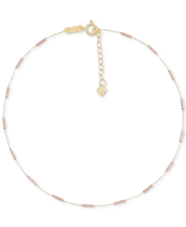 Textured Cylindrical Bead Ankle Bracelet in 14k Gold & Rose Gold