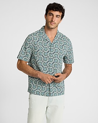Textured Swirl Printed Cotton Stretch Short Sleeve Shirt