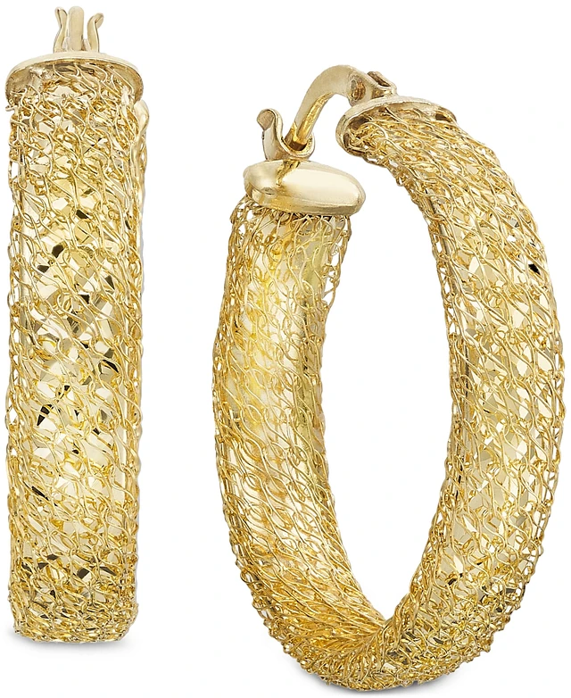 Textured Weave Small Hoop Earrings in 10k Gold, 20mm