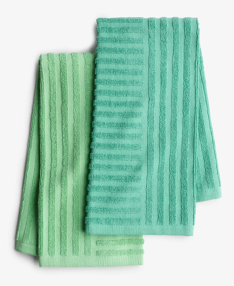 Bring fresh color and contemporary style to your kitchen with this set from The Cellar, two all-cotton towels with rich texture.