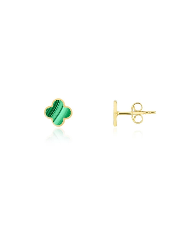The Lovery Mini Malachaite Clover Stud Earrings 14K Gold