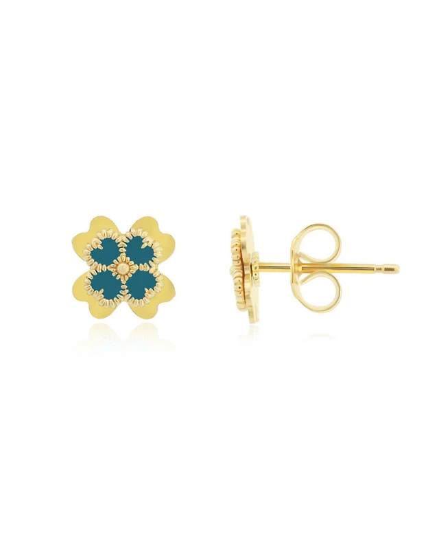 The Lovery Ocean Blue Enamel Four Leaf Clover Stud Earrings 14K Gold