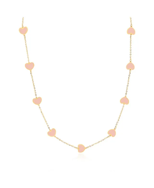 The Lovery Bubblegum Pink Heart Station Necklace 14K Gold