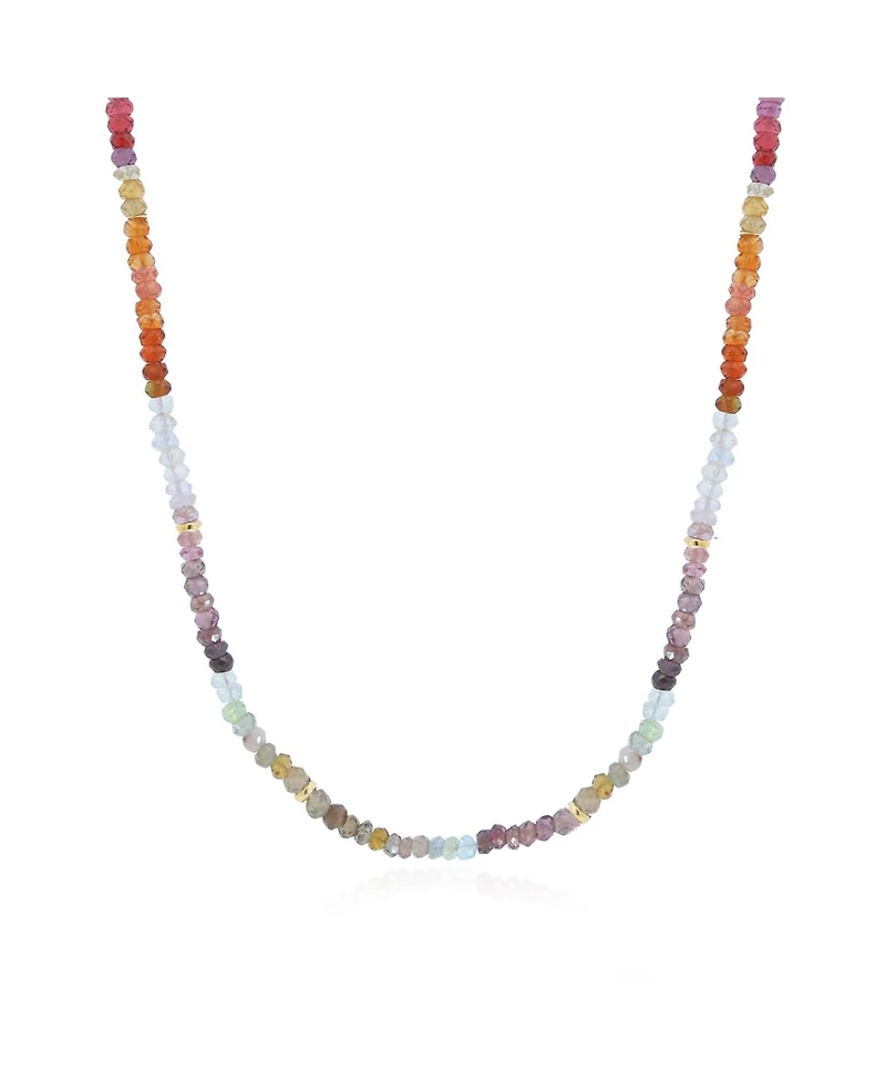 The Lovery Tundra Sapphire Beaded Necklace is in 14K Yellow Gold. The beads measure approximately 3.5 millimeters thick. The chain length is 17 inches with an easy to use spring ring clasp.