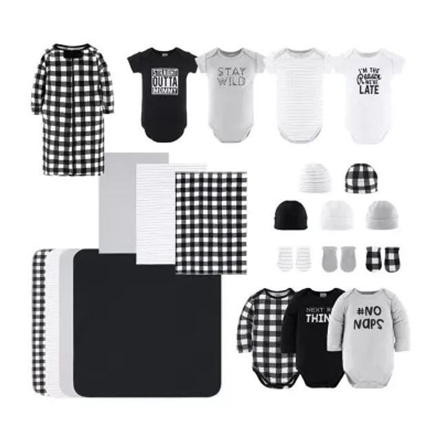 The Peanutshell 0-3m Black Plaid Baby Unisex 23-pc. Baby Clothing Set