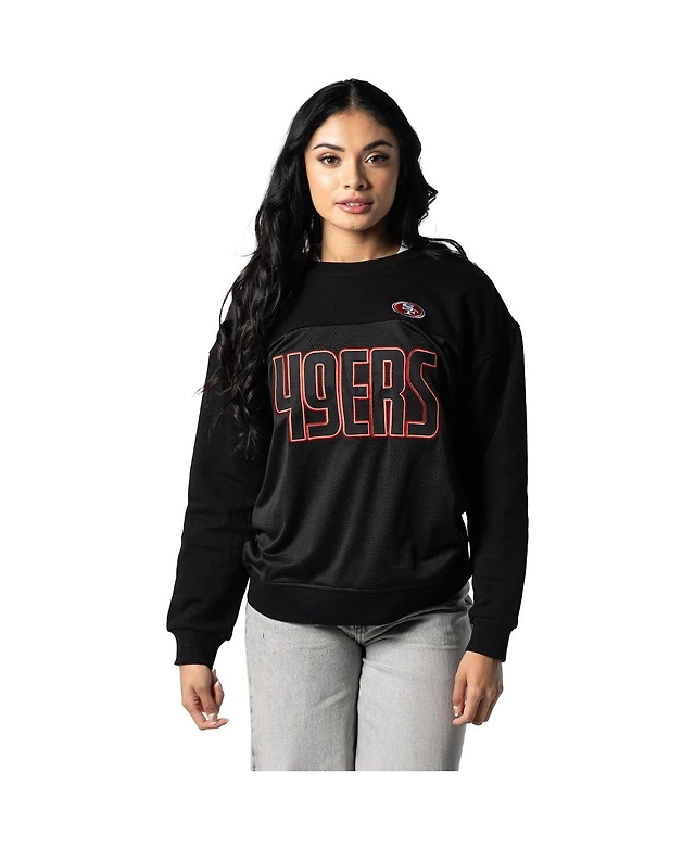 The Wild Collective Women's Black San Francisco 49ers Long Sleeve Knit Pullover Sweatshirt