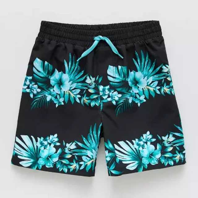 Thereabouts Little & Big Kid Boys Striped Above The Knee Swim Trunks