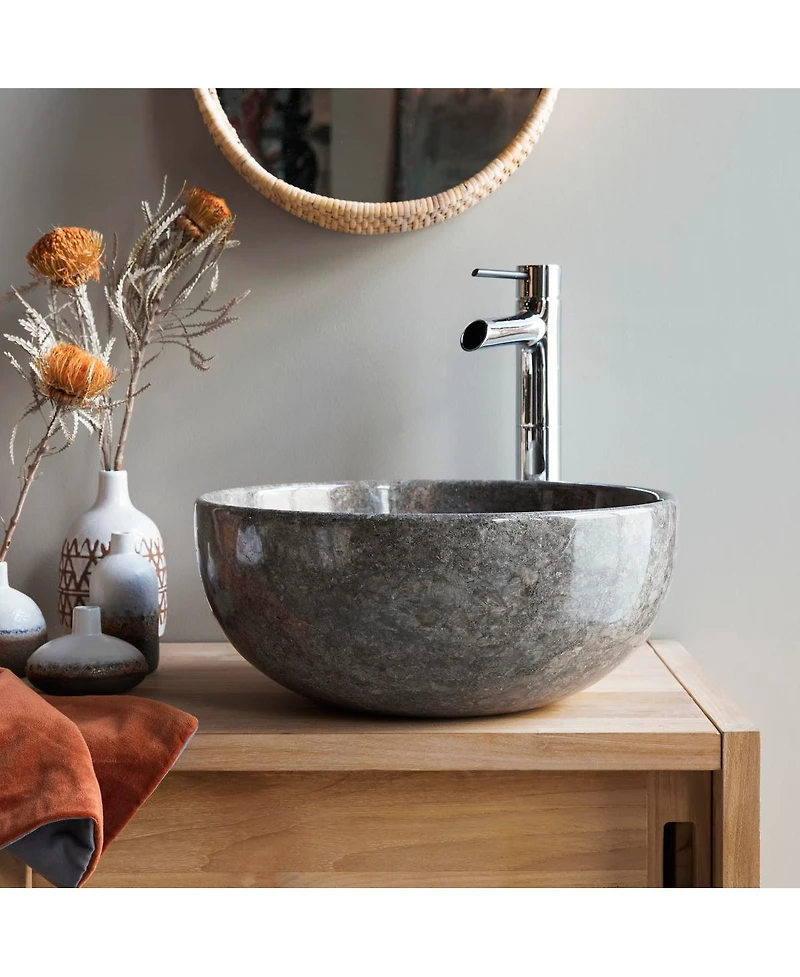 Tikamoon Mia Light Grey round marble washbasin