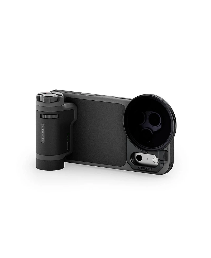 Introducing the Khronos Lite iPhone 17 Pro/Pro Max Creator KitProfessional performance, now lighter than ever. Experience a perfect balance between daily usability and professional filmmaking capability. The Khronos Lite Case features an integrated kickstand that supports both horizontal and vertical orientations - ideal for hands-free video calls, streaming, or study sessions.Its magnetic back plate seamlessly connects to a variety of magnetic accessories such as card holders, Led lights, SSDs, power banks, or cooling fans, expanding your setup without adding bulk. The included lightweight Bluetooth handle mounts directly onto the case via the kickstand's mounting points - keeping your Usb-c port completely free. Through Bluetooth connection, you can intuitively control focus, zoom, shutter, and recording without touching the screen.