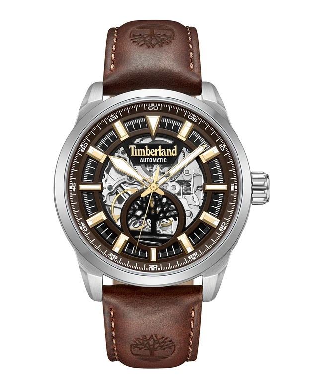 Timberland Men's Automatic Brown Dark Genuine Leather Watch, 44mm