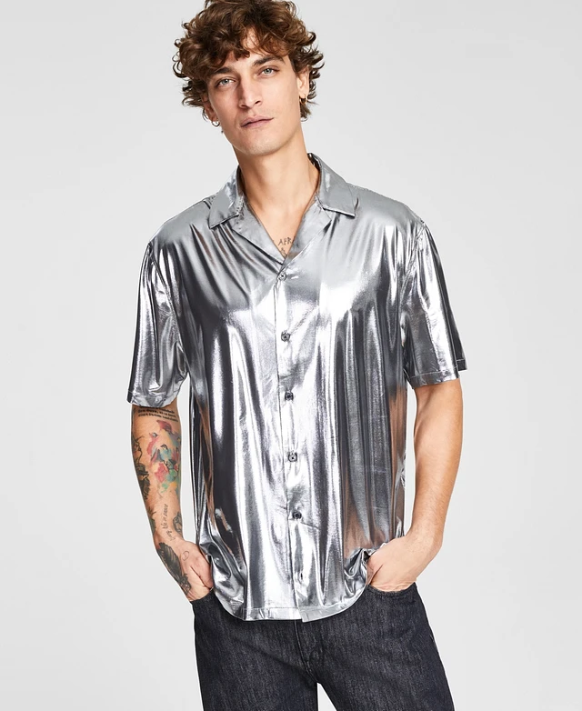 Tinsel Men's Metallic Short Sleeve Button-Front Camp Shirt