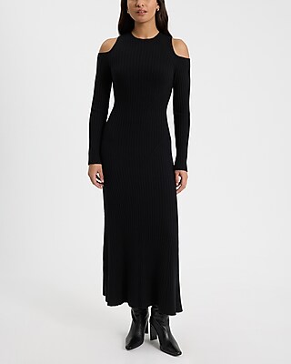 Ribbed Cutout Long Sleeve Maxi Sweater Dress