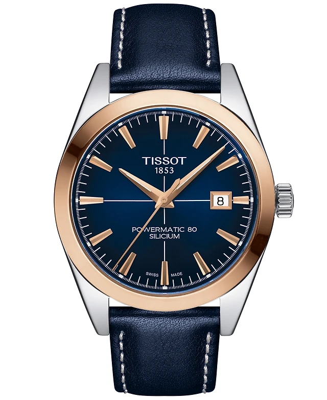 Tissot Men's Swiss Automatic Gentleman Powermatic 80 Silicium Blue Leather Strap Watch 40mm