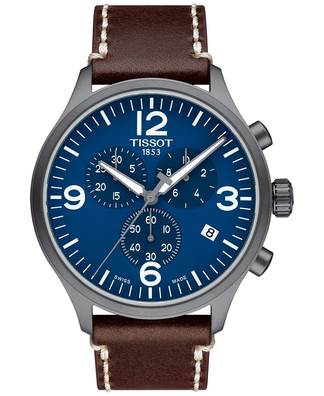 Tissot Men's Swiss Chronograph Xl Classic Blue Leather Strap Watch 45mm