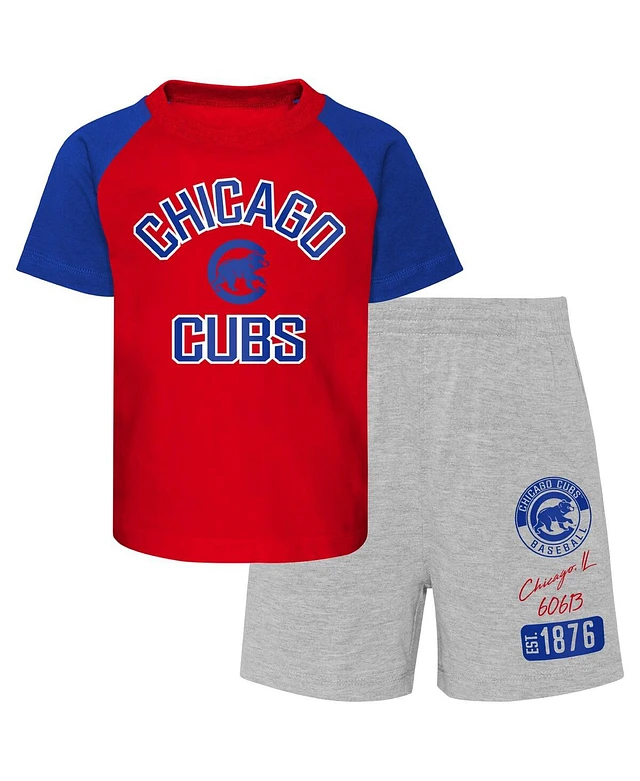 Infant Boys and Girls Red Heather Gray Chicago Cubs Ground Out Baller Raglan T-shirt Shorts Set