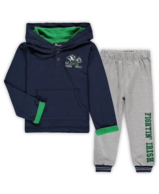 Toddler Boys Colosseum Navy, Heathered Gray Notre Dame Fighting Irish Poppies Hoodie and Sweatpants Set