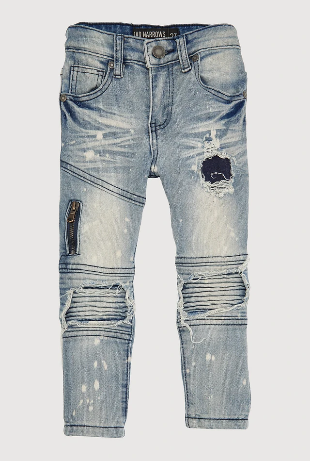Toddler Boys Zip Detail Distressed Moto Jeans, Blue, Size 4T