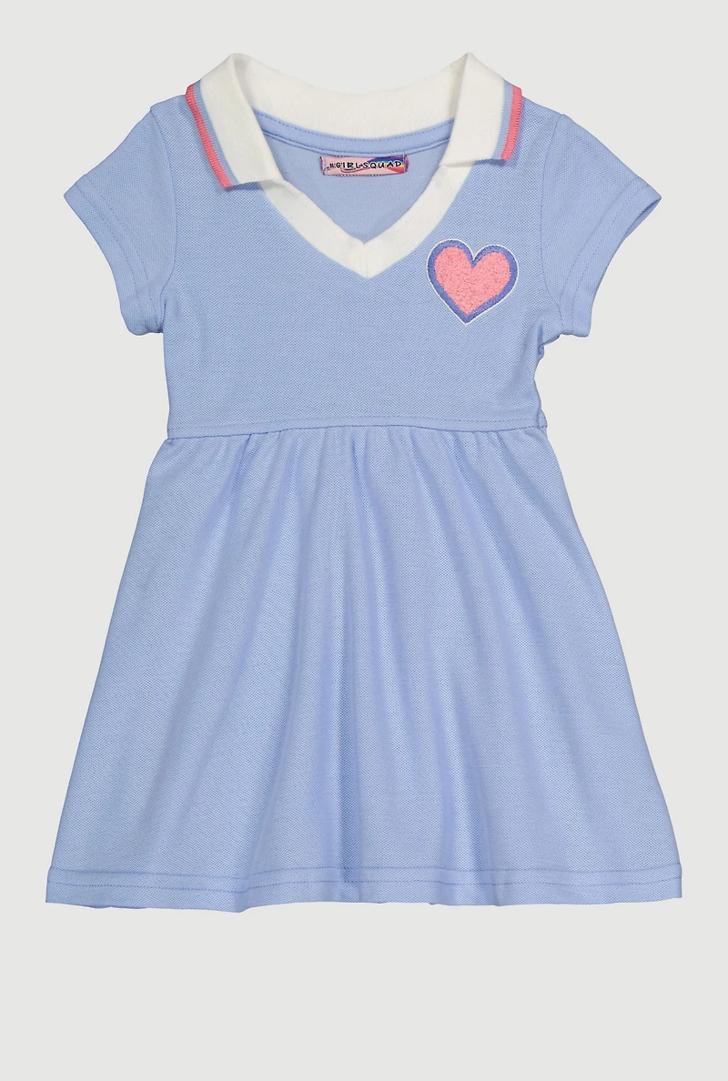 Discover the perfect blend of cute and sporty with the Toddler Girls Chenille Heart Varsity Stripe Skater Dress. This charming dress features a playful varsity stripe detail and embroidered hearts that make every day feel special. Designed with a comfy polo collar and short sleeves, it’s ideal for active little girls who love to twirl and play. The fit and flare silhouette creates a flattering shape, while the mid-length hem adds just the right touch of style. Whether for a casual outing or a fun playdate, this dress is a must-have for your little fashionista’s wardrobe.