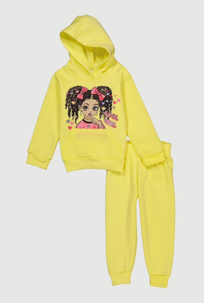 Toddler Girls Cool Girl Graphic Hoodie and Joggers Set, Yellow, Size 4T