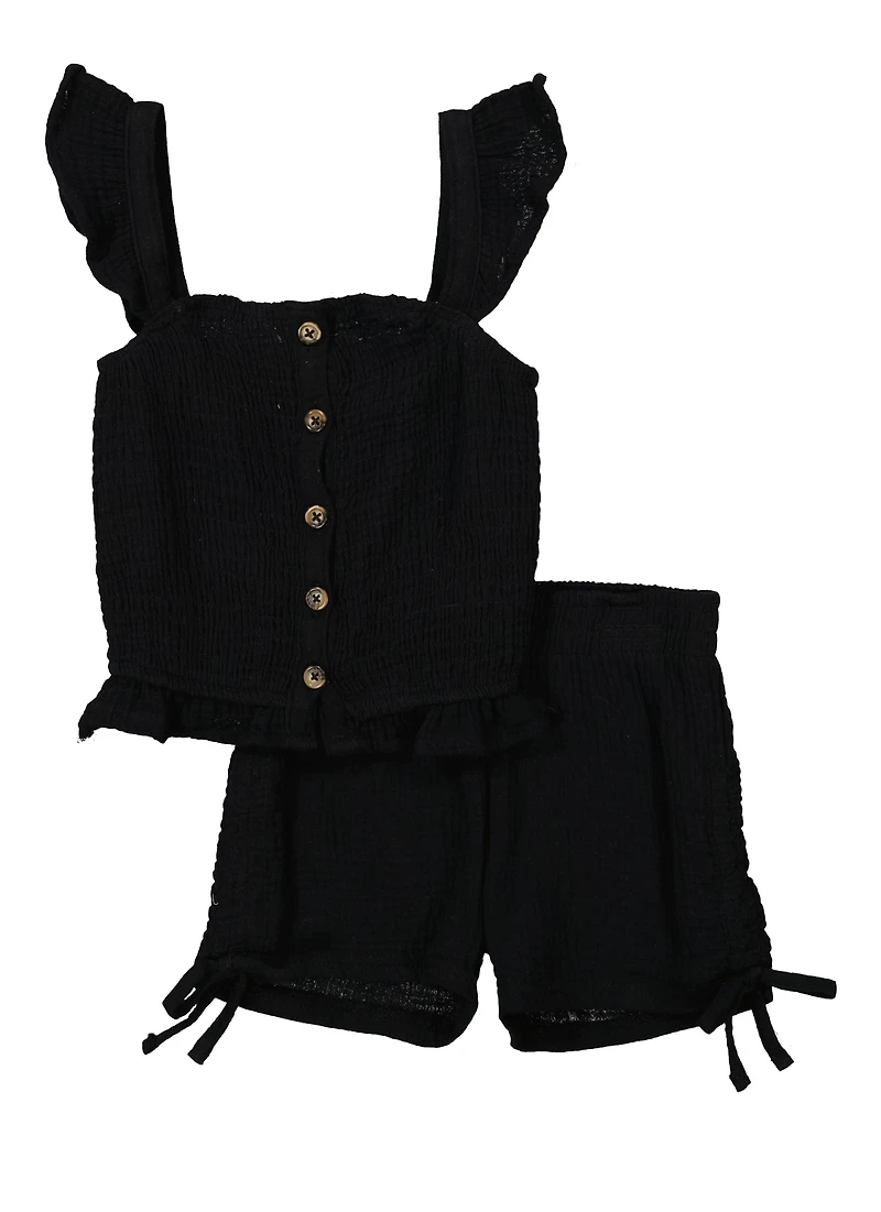 Toddler Girls Gauze Knit Smocked Tank Top and Shorts
