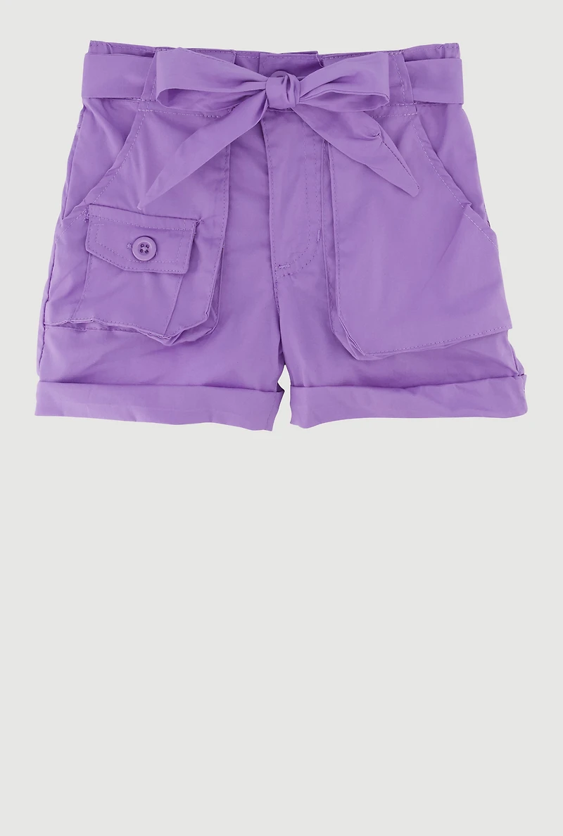 Toddler Girls High Waisted Poplin Shorts with Tie Waist Belt