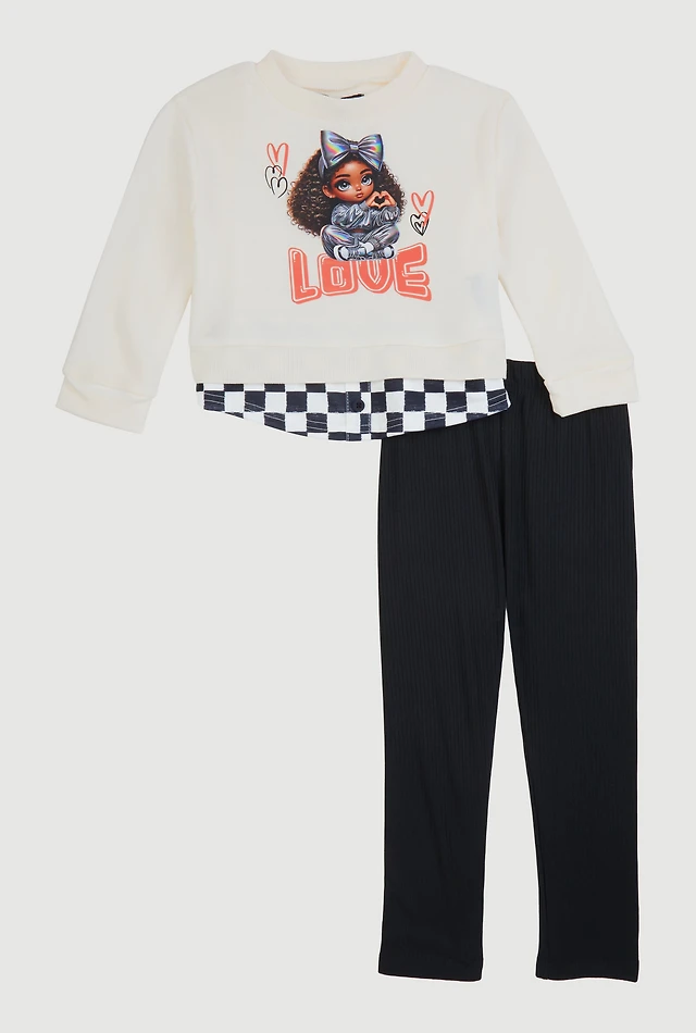 Toddler Girls Love Graphic Layered Look Sweatshirt and Leggings, Multi, Size 2T