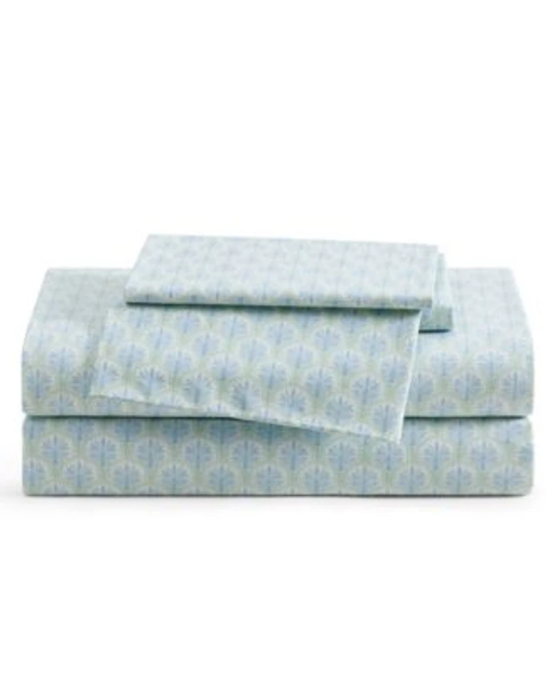 Bring coastal ease to your bedroom with the Tommy Bahama coastal bay cotton percale sheet set. Featuring a soothing light blue printed coastal-inspired pattern reminiscent of gentle ocean waves and seaside Serenity, this set offers a fresh, calming touch to your home decor.