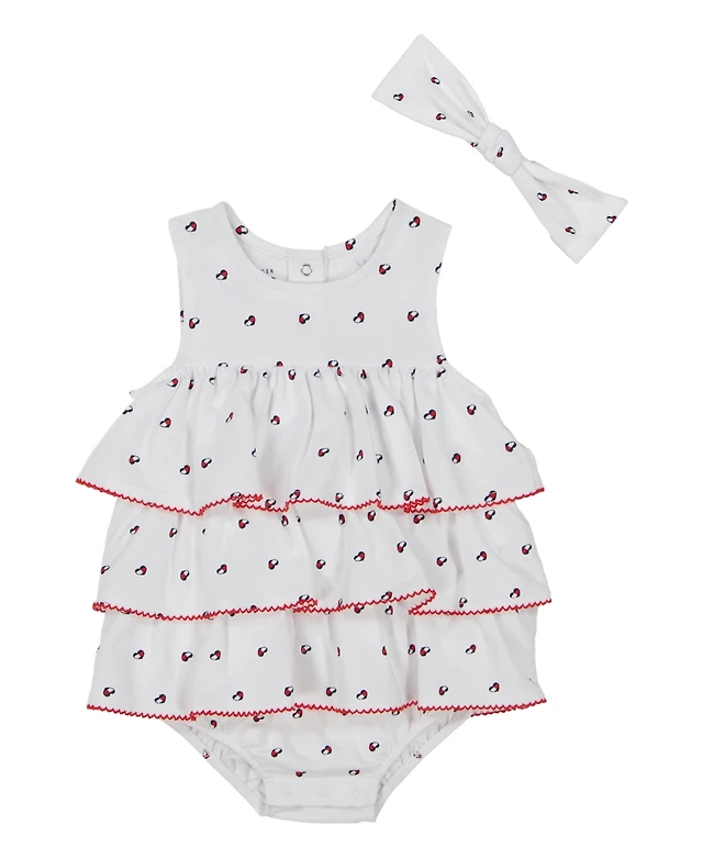 Tommy Hilfiger Baby Girls 2-Piece Printed Pique Sunsuit Headband Set