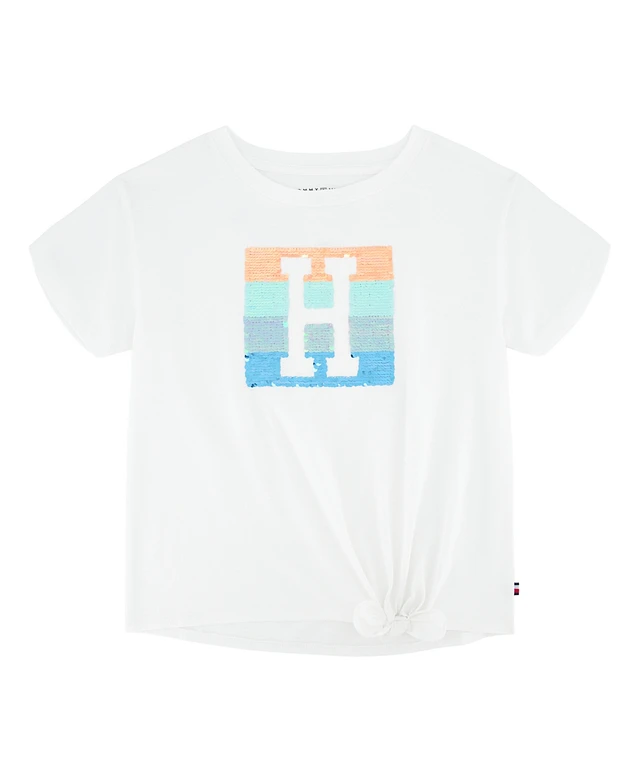 Tommy Hilfiger Big Girls Sequin Side Tie Short Sleeve T-Shirt