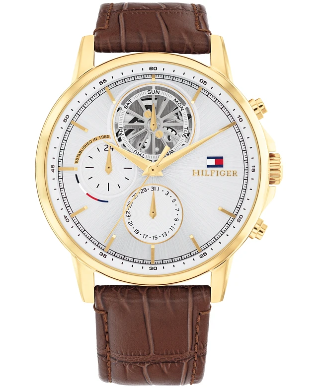 Tommy Hilfiger Men's Multifunction Brown Leather Watch 44mm