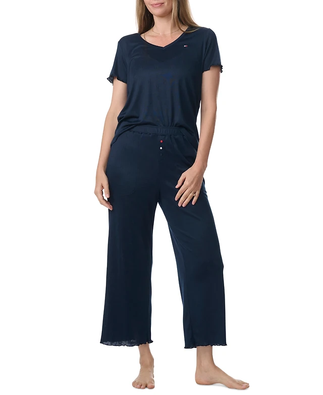 Tommy Hilfiger Women's 2-Pc. Short-Sleeve T-Shirt & Wide-Leg Cropped Pants Pajama Set