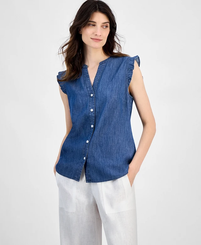 Tommy Hilfiger Women's Chambray Ruffled Shirt