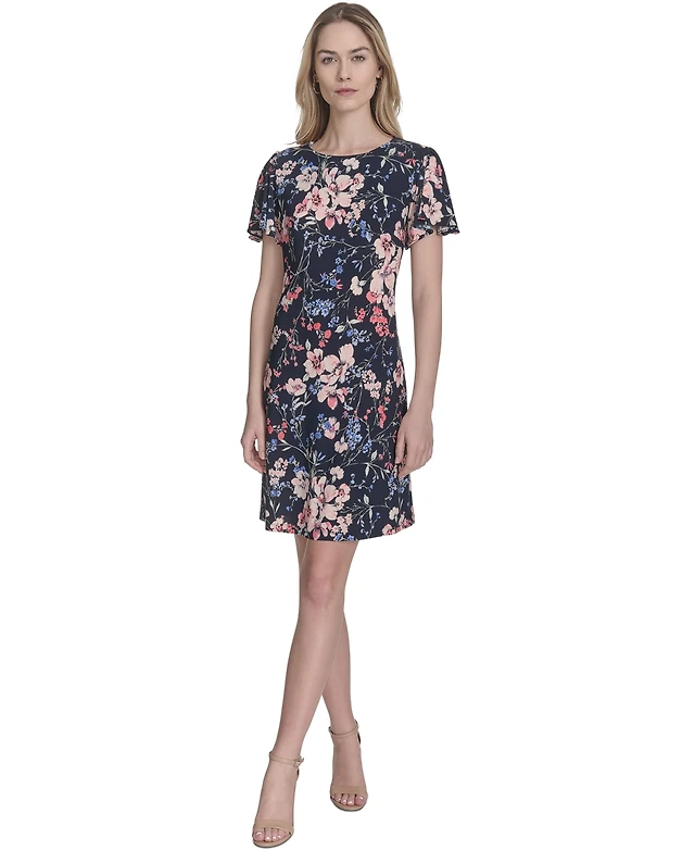 Tommy Hilfiger Women's Floral Flutter-Sleeve Shift Dress