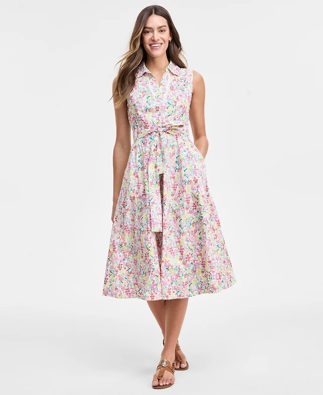 Tommy Hilfiger Women's Floral Print Belted Shirtdress