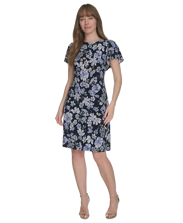 Tommy Hilfiger Women's Floral-Print Flutter-Sleeve Dress