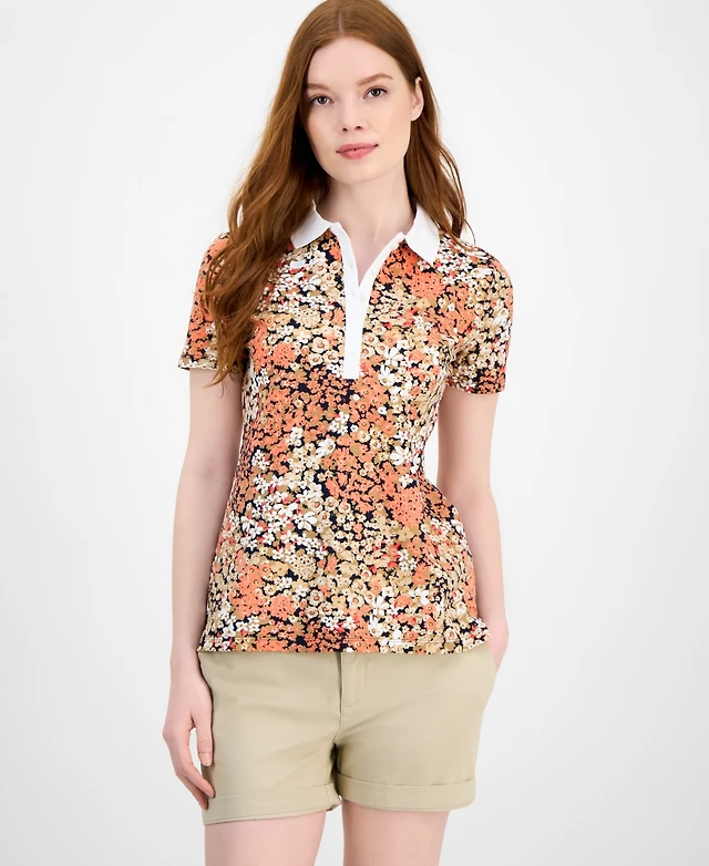 Tommy Hilfiger Women's Floral-Print Short-Sleeve Polo Shirt