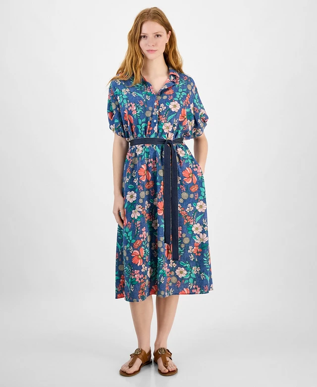 Tommy Hilfiger Women's Floral-Print Linen-Blend Shirt Dress