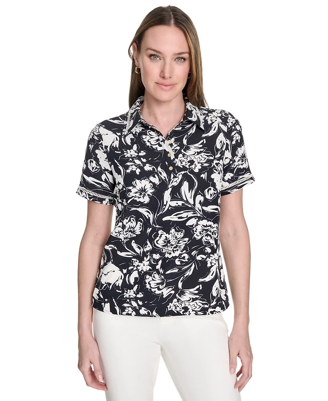 Tommy Hilfiger Women's Floral-Print Short-Sleeve Polo Shirt