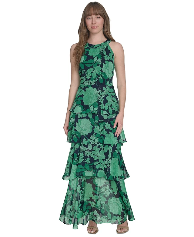 Tommy Hilfiger Women's Floral Ruffle-Tiered Halter Maxi Dress