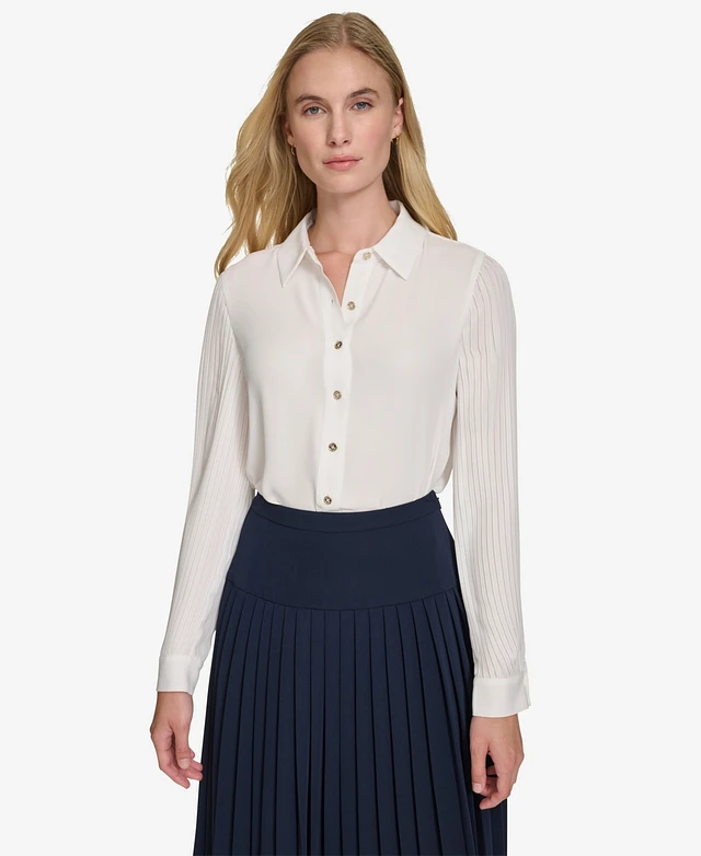 Tommy Hilfiger Women's Pleated Sleeve Button-Up Blouse