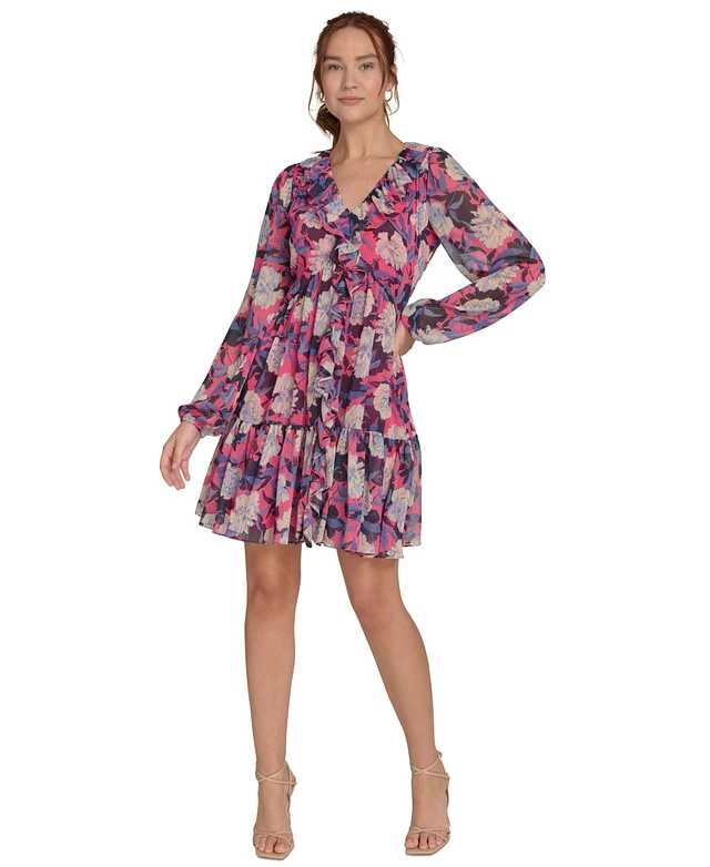 Tommy Hilfiger Women's Printed Ruffled Blouson-Sleeve Shift Dress