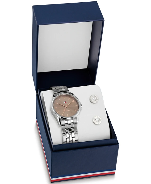 Tommy Hilfiger Women's Quartz Silver-Tone Stainless Steel Bracelet Watch Set, 30mm