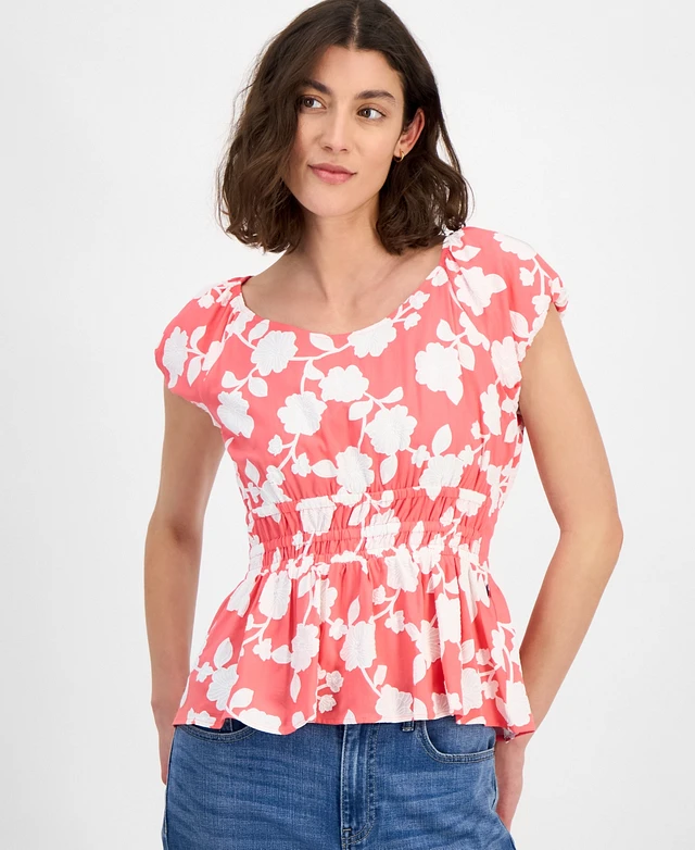 Tommy Hilfiger Women's Printed Smocked Cap-Sleeve Top